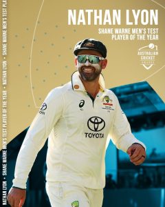 Cricket Australia declared as winner of Shane Warne Test Player of the year. Lyon was a deserved victor of the award named after the only spin bowler ahead of him on Australia’s all-time wicket-taking charts, taking out the Shane Warne Test award.