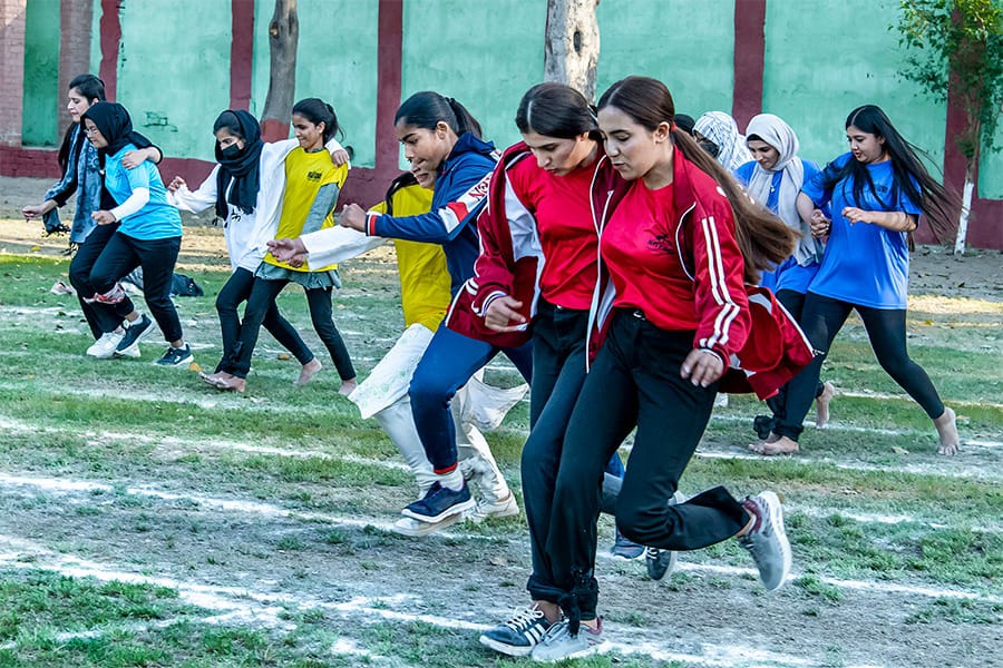 The various contests featuring annual sports day included final races of 800, 200, 100 meter for boys and girls, three-leg race, javelin throw, shot-put, long jump, triple jump, discus throw, tug of war, chaati race, martial art presentation/gymnastic show, etc.