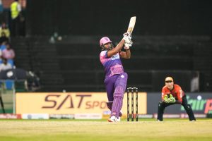 Banton continued to hit freely and swung Thompson’s first delivery of the eighth over for a six. He smashed the second delivery through extra cover for another boundary. Banton’s fine knock of 46 ended when Thompson had him leg before while attempting a reverse sweep. His knock off 23 balls had four boundaries and three sixes.