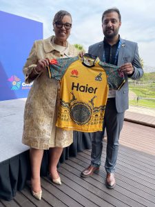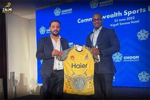 In addition, President Commonwealth Games Lewis Martin and Secretary General Commonwealth Patricia Scotland were presented with Peshawar Zalmi shirts by Mian Abbas on the occasion.