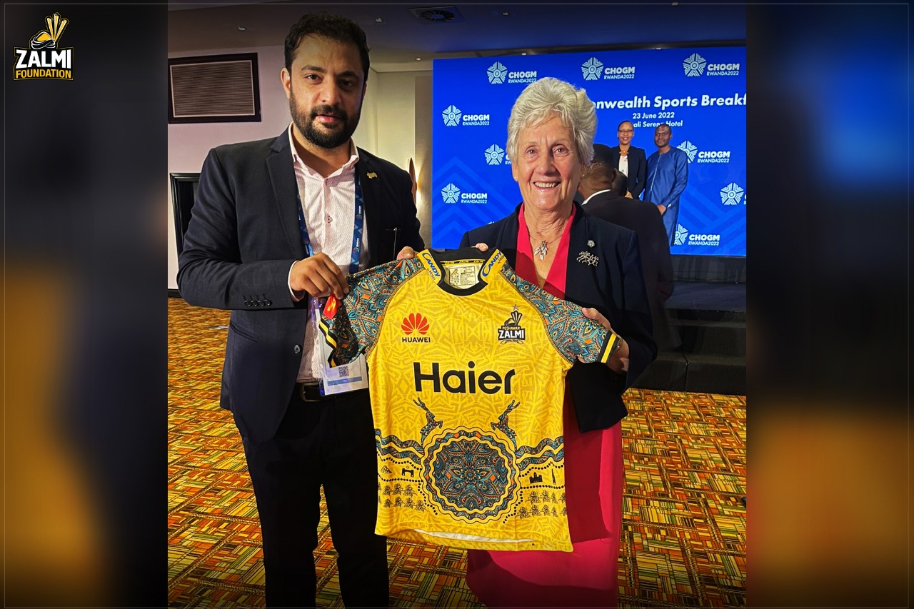 In addition, President Commonwealth Games Lewis Martin and Secretary General Commonwealth Patricia Scotland were presented with Peshawar Zalmi shirts by Mian Abbas on the occasion.