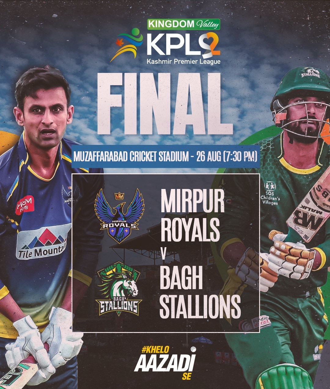Bagh Stallions will face Mirpur Royals in the Final tomorrow.#KingdomValleyKPL #KheloAazadiSe pic.twitter.com/wQURhgyVR8