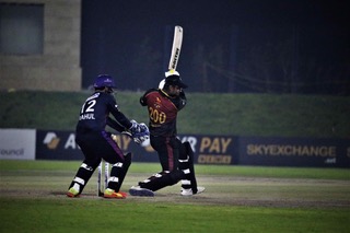 Jiju hit Luqman for two consecutive boundaries in the third over. Usman Khan, who joined his skipper, began with an elegant straight driven boundary off Sanchit Sharma. Amjad Gul was introduced in the seventh over and Usman lofted him straight for his first six. Gul struck back in the tenth over when Usman, going on to his knee, hit him into the hands of Adnan Arif for 34.  His knock off 26 balls had four boundaries and two sixes. The pair had put on 66 runs for the second wicket.