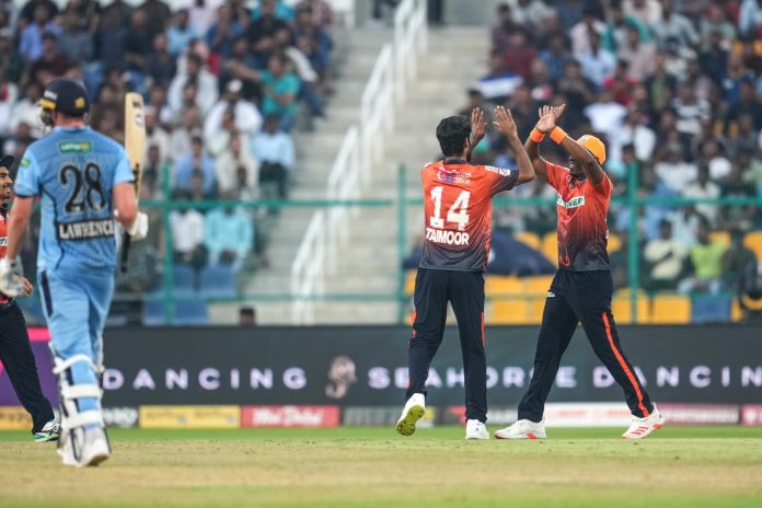 Daniel Lawrence and Kobe Herft began Chennai’s chase to the target. UAE’s young left-arm spinner Aayan Afzal Khan opened the attack for Delhi and Lawrence picked two boundaries off that over. Fazalhaq Farooq bowled a brilliant second over giving away just four runs. Lawrence hit Aayan Khan’s first delivery for a six over the bowler’s head. He also hit the last delivery for a boundary. The fourth over from Michael Stanley was also tight except for Lawrence slicing the fourth ball for a boundary to third man.