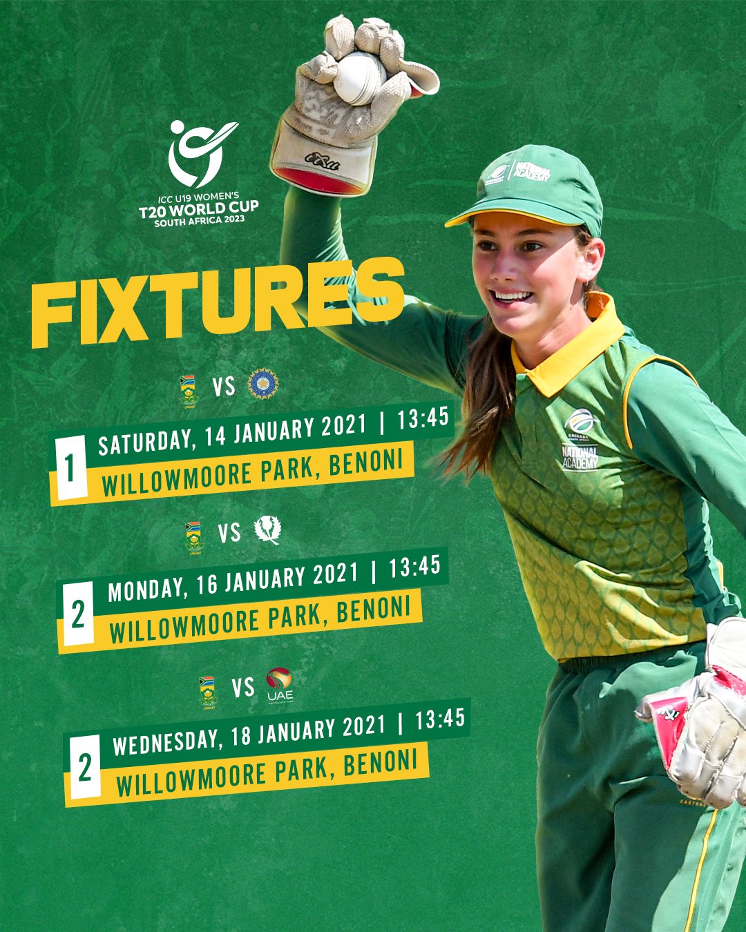 South Africa, in Group D, will face up against India, Scotland and United Arab Emirates (UAE). The opening match for the home-side will be on Saturday, 14 January 2022 at 13h45 against India at Willowmoore Park, Benoni.