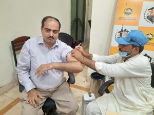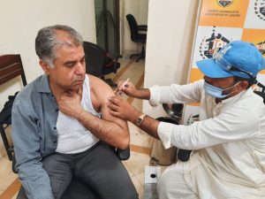 Journalists, officials of Sports Board Punjab and Pakistan Hockey Federation vaccinated. Deputy District Health Officer (DDHO) Gulberg Town Dr Rana Fareed Masood visited the camp and briefed about the benefits of vaccination.