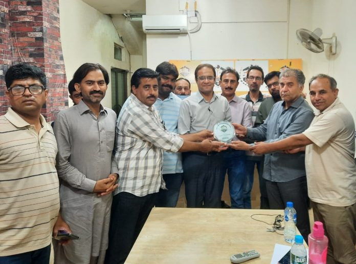 Aqeel Billa, President, Sports Journalists Association of Lahore, presented an honorary shield to Dr Farid Masood on behalf of SJAL.