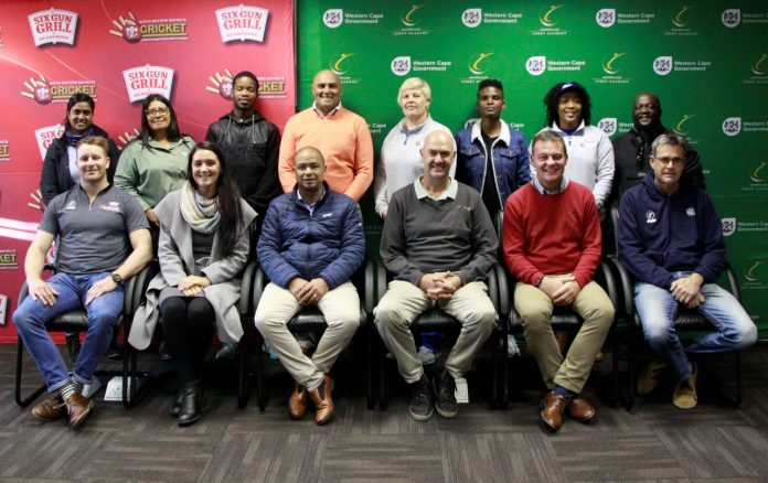 Front Row: Shannon Musto (Strength & Conditioning Coach: SWD), Stephnie Mckay (Administrator: EDEN Districts Sport Academy), Rudy Claassen (President: SWD Cricket), Mr Piet Botha (Head Coach SWD professional Team), Albertus Kennedy (CEO: SWD Cricket) and Jean Neethling (Acting Districts Manager: Department of Cultural Affairs and Sport).